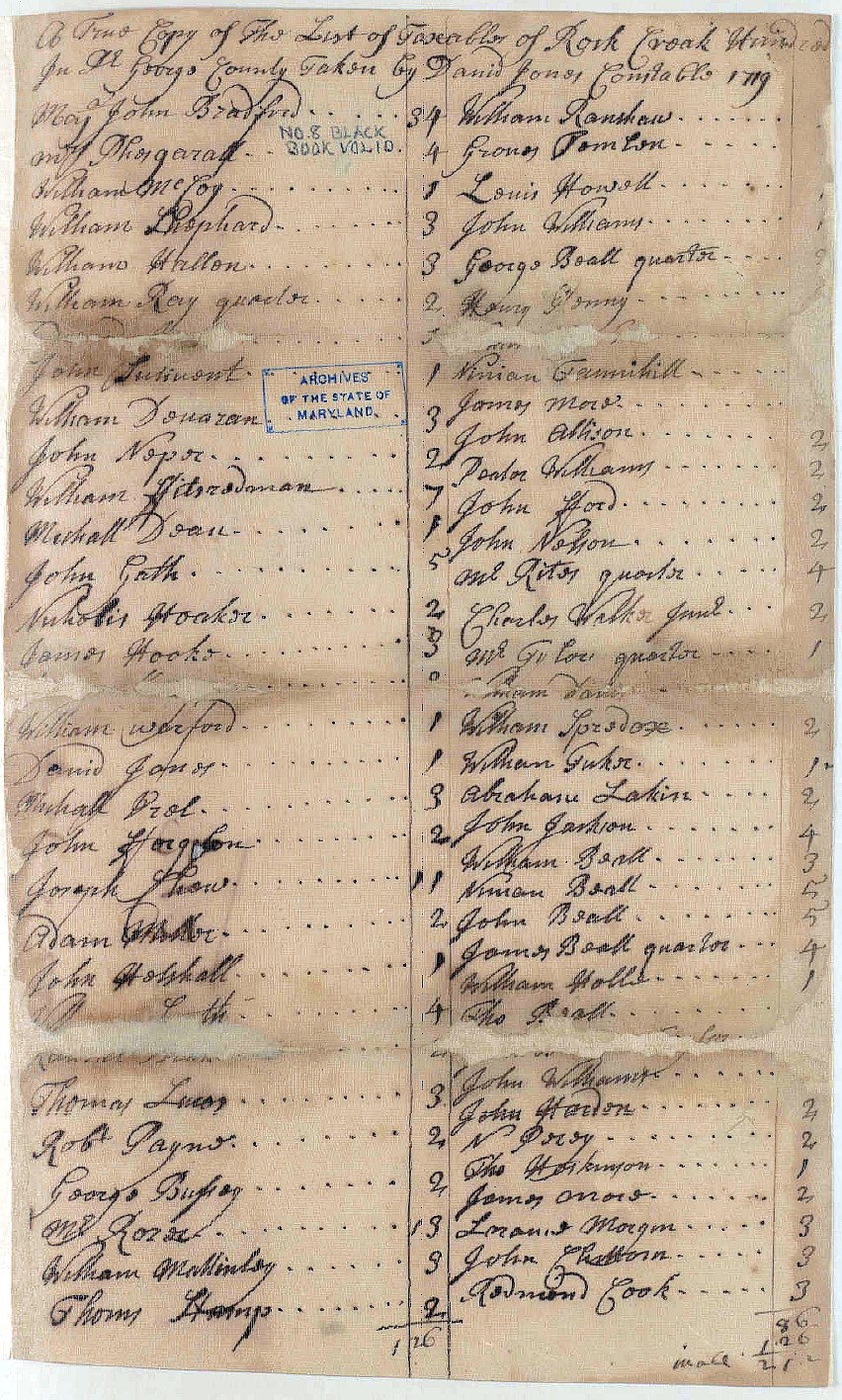 Prince George's Co., Md., which was created in 1696, encompassed an area that included the present day counties of Montgomery, Frederick and Prince George's and the District of Columbia. In 1748 Frederick County split off from Prince George's County and encompassed all of western Maryland including present day Montgomery County and the northwestern part of the District of Columbia. In 1776 Montgomery County was carved out of the southeastern portion of Frederick County. While the narrative that follows describes events that occurred in both Prince George's County and Frederick County, the actual location of these events was in present day Montgomery County and the northwestern part of the District of Columbia.