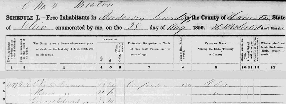 | Charles S. Brown | 32 | M | Master Carpenter | $1,500 | $250 | Ohio | ||