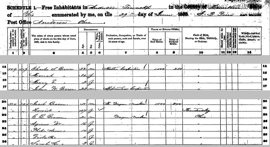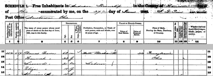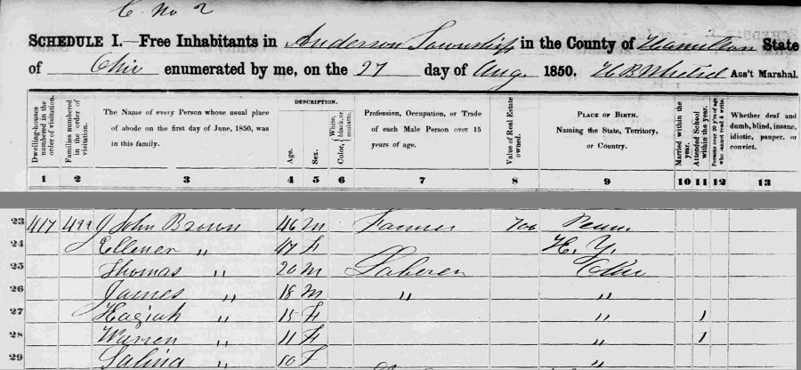 - Thomas Brown, b. ~1830 in Anderson Twp., Hamilton Co., Ohio.