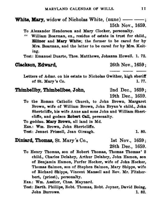 - Margaret Hocker, b. ~1686 in St. Mary's Co., Md., m. James Hook ~1707 in Prince George's Co., Md.