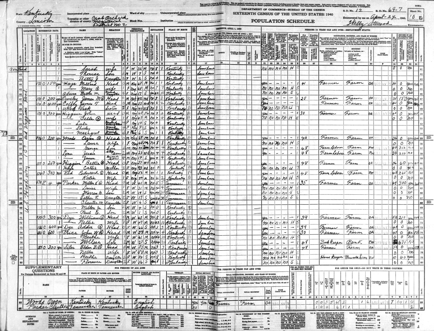 The 1940 census shows Milton K. Parker living on a farm in Lincoln Co., Ky. about six miles south of Stanford. While the census indicates he was renting the farm at the time, this appears to be the same farm that he owned for the next 35 years. The two churches he pastored were nearby (within two miles as Ruth Parker indicated in her Memories) and some longtime neighbors, particularly the Watkins and Youngs, were living nearby. The two oldest children of Milton Kasper Parker and Margaret Jane Seals, Warren G. Parker and Esther Ruth Parker, spent a few years on the farm in the late 1930s and early 1940s; however, Ruth decided to pursue a career in nursing in Cincinnati (see Memories, Part 3 for more on her decision) and Warren enlisted in the Army just after Pearl Harbor. Charles Parker, who was living with his Aunt Stella and grandfather, Barney Parker, in Caryville, Tenn. enlisted in the Army Air Force later in the war, likely soon after his 18th birthday.