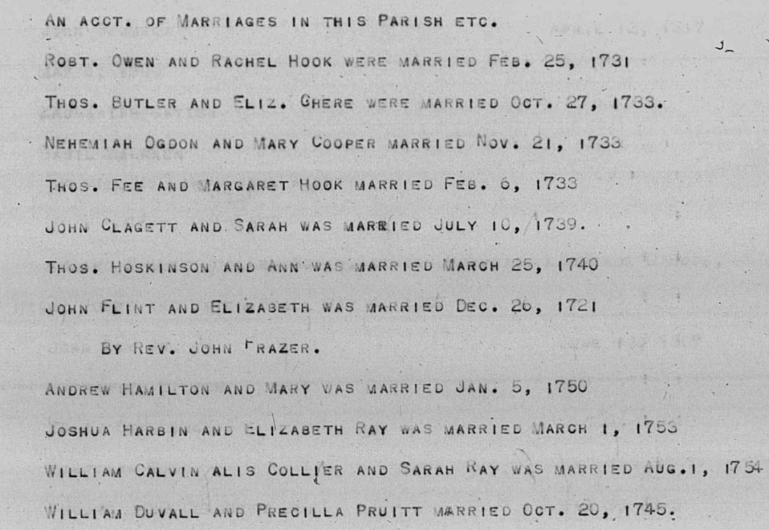 It is commonly believed that Samuel Pruitt and Elizabeth Hawker were married in 1720 in Prince George's Co., Md.; however, there is no known historical record to confirm the date. Elizabeth Hawker was born on Dec. 14, 1701 in Prince George's Co., Md. She was the daughter of Robert Hocker and Amy Selby. For more on the Hocker/Hawker lineage, see Hawker. There are several variations of the names of the children born to Samuel and Elizabeth Pruitt. This area needs more investigation, but here is a list that makes the most sense based on historical records: