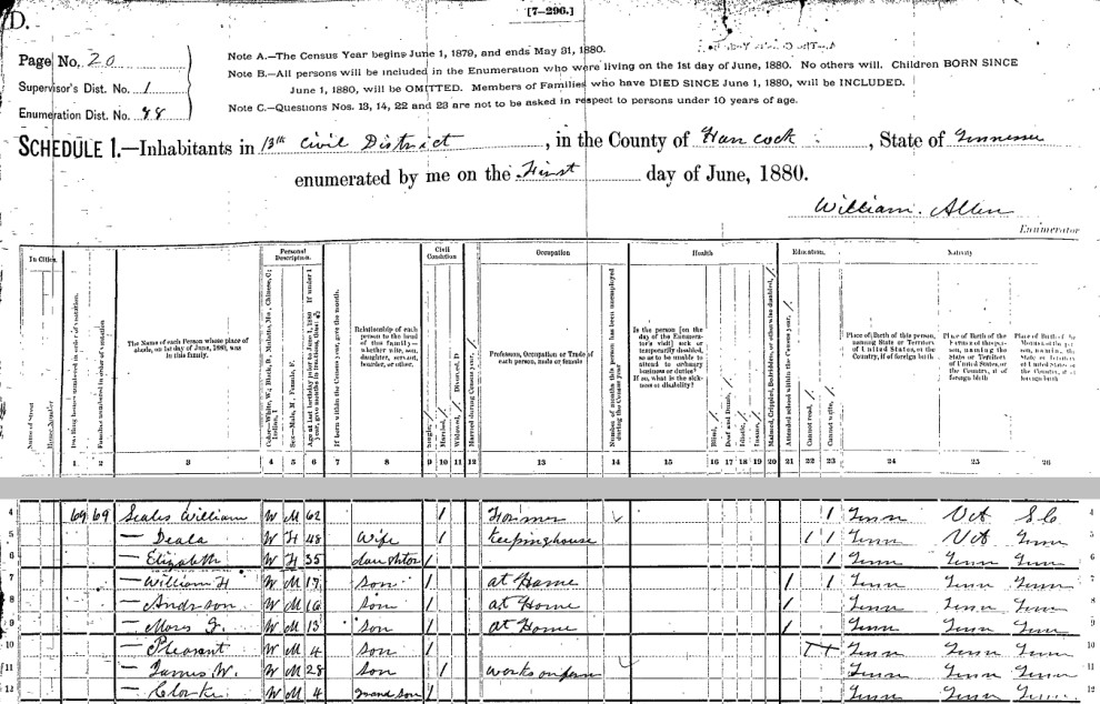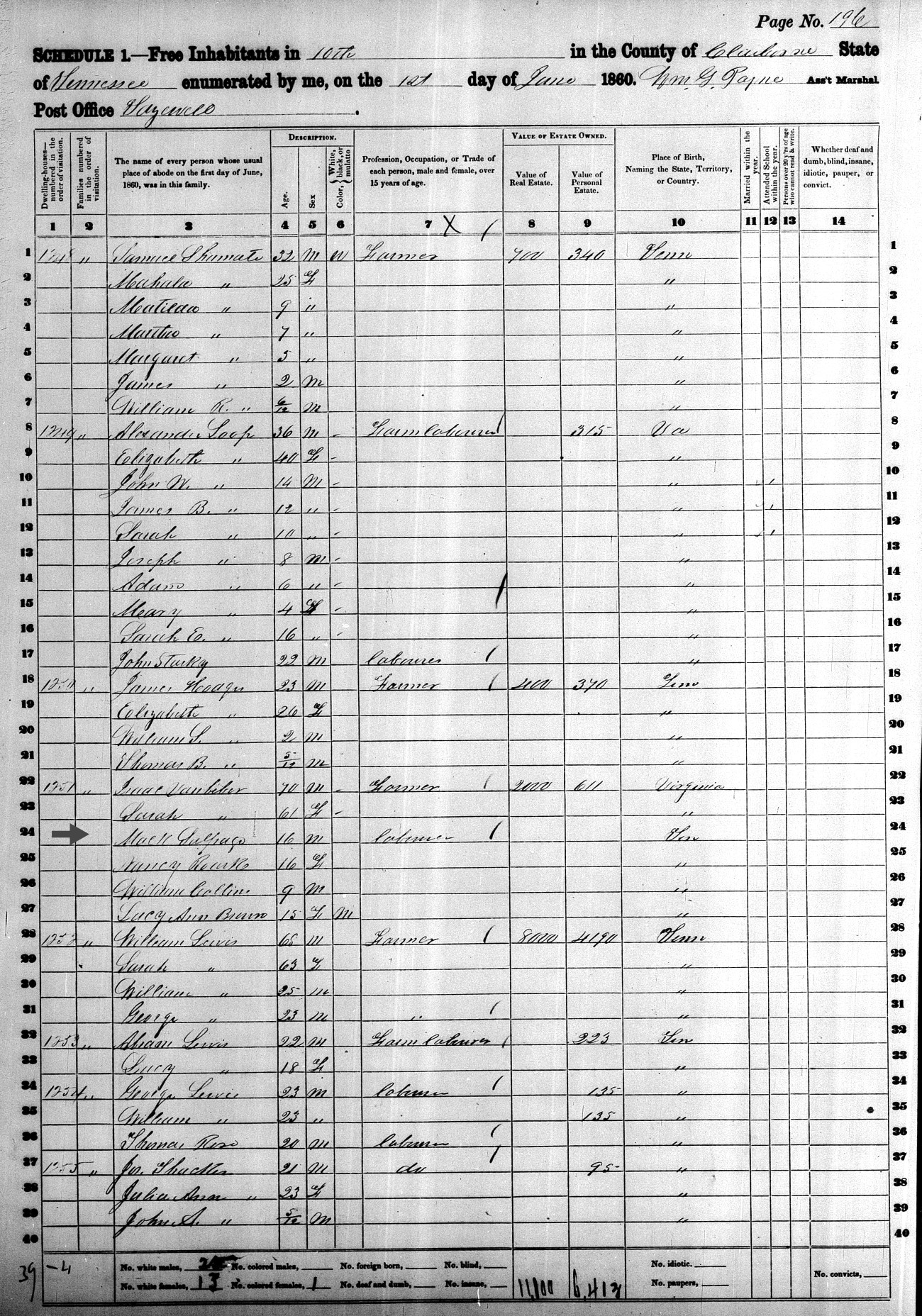 | Pleasant Seales | M | 4 | son | ✓ | Tenn | Tenn | Tenn | ||