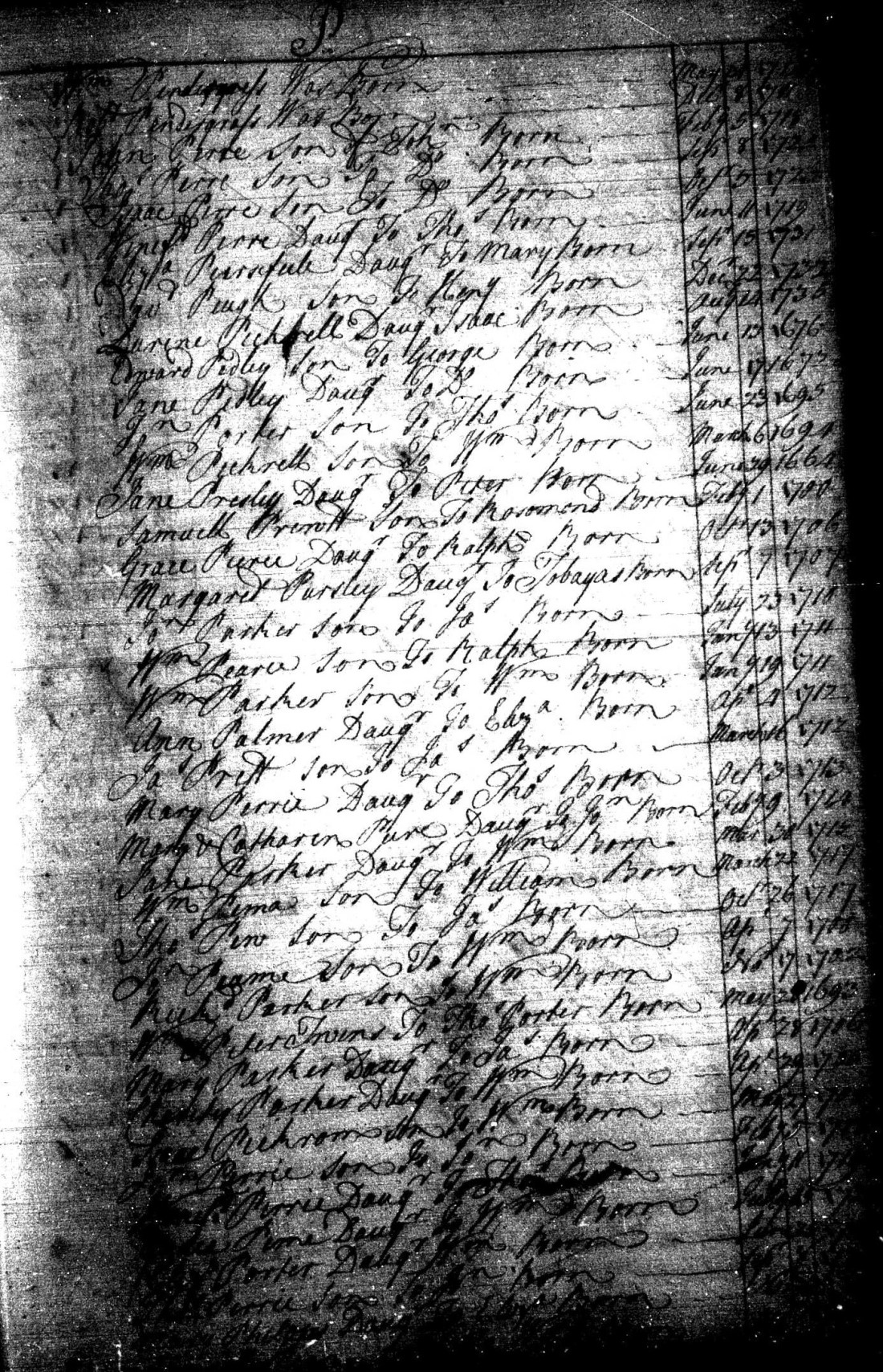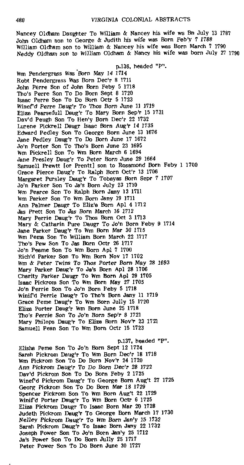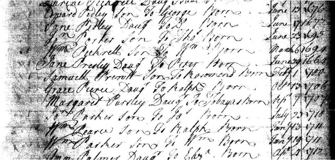 On February 1, 1700, Samuell Prewtt (or Prentt) was born to Rosamond according to Northumberland Co., Va. records. Beverley Fleet originally transcribed these St. Stephen's Parish birth records in 1938 and noted:
