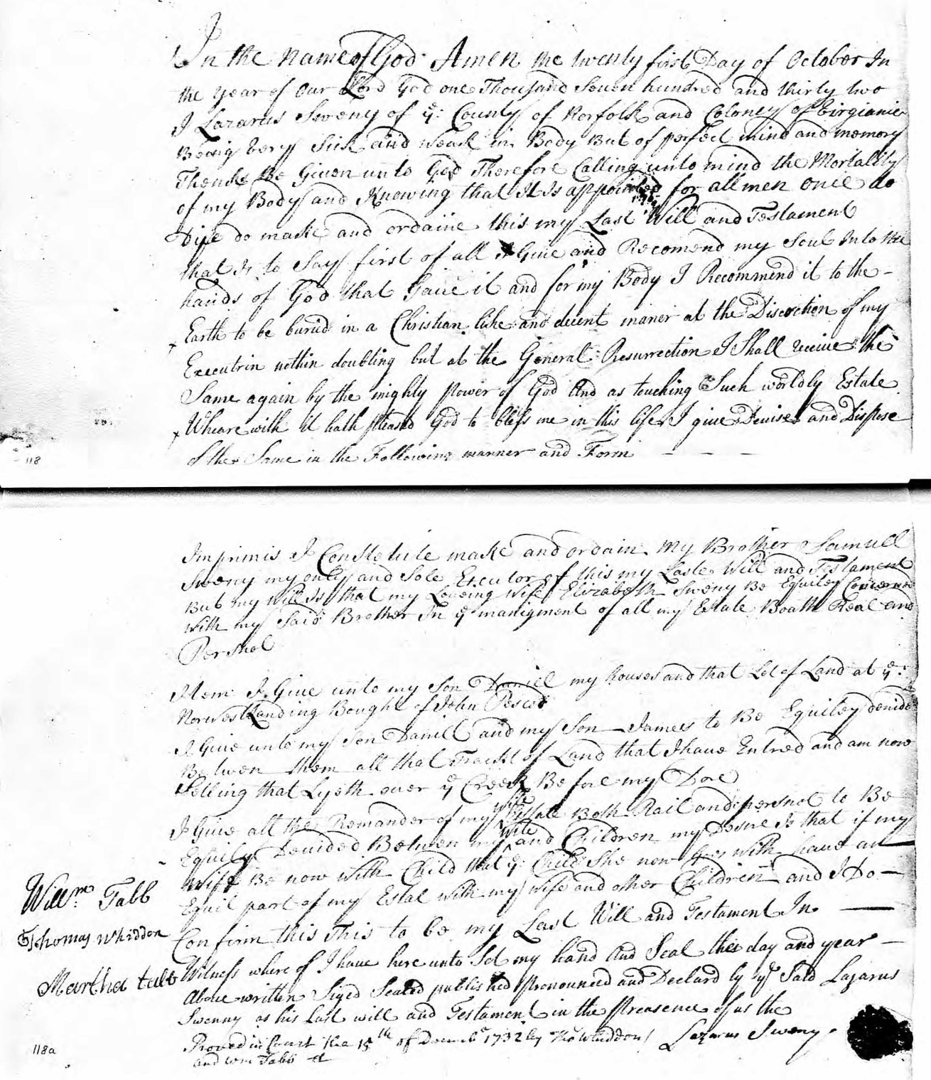 - Lazarus Sweny, b. ~1684 in Elizabeth City Co., Va., m. Elizabeth Wilson on Feb. 14, 1729 in Norfolk Co., Va., d. bef. Dec. 15, 1732 in Norfolk Co., Va.