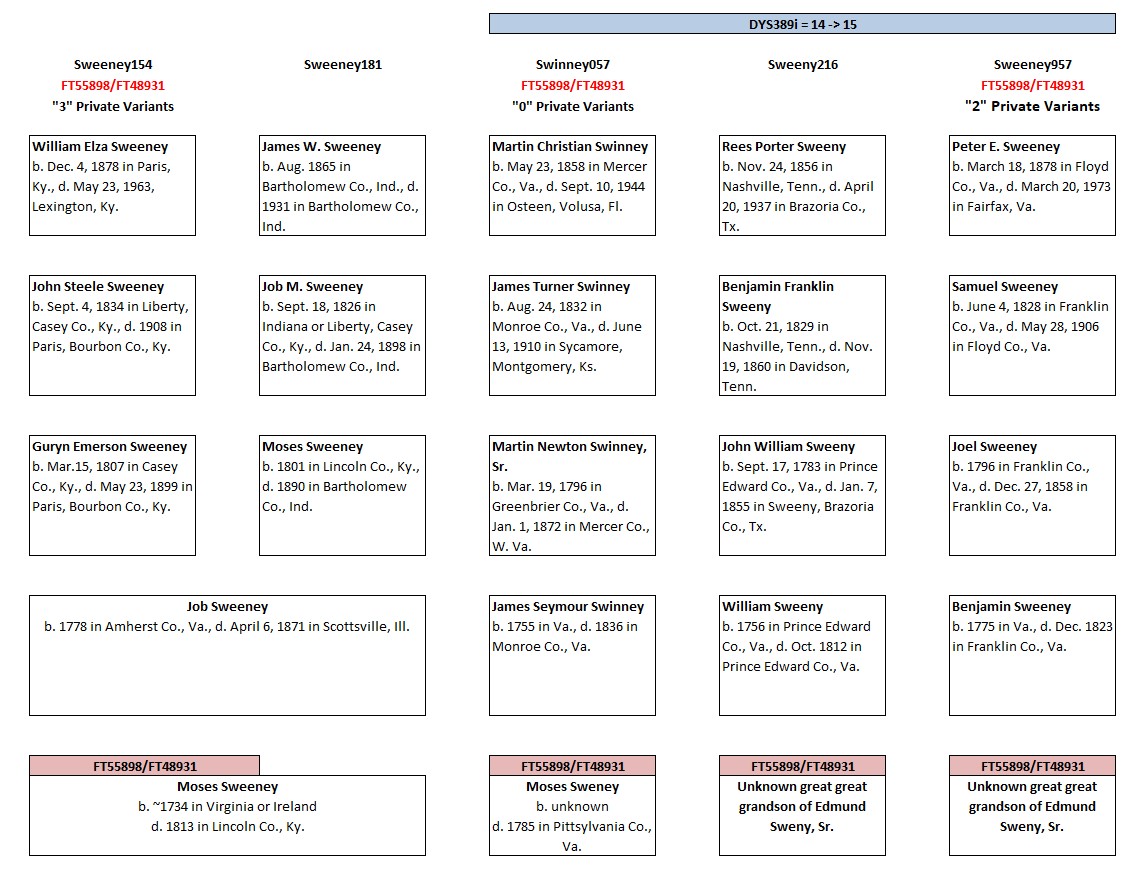 In the next section, we'll delve more deeply into these Moses Sweeneys and a few other Sweeneys in southern and western Virginia and Lincoln and Casey counties in Kentucky in an attempt to flesh out the relationships of these individuals to our testers.