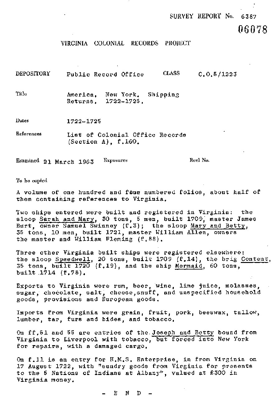 The Tidewater Area of Virginia as the Starting Point for Further Research
