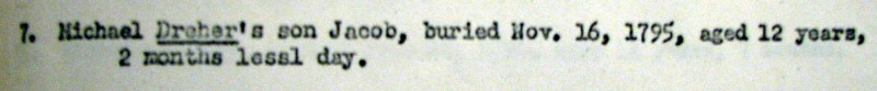 A possible clue to finding more information on Michael Turner/Dreher may come from what we know about German naming customs that were used in the 1700s. The most common custom was, in part, as follows: