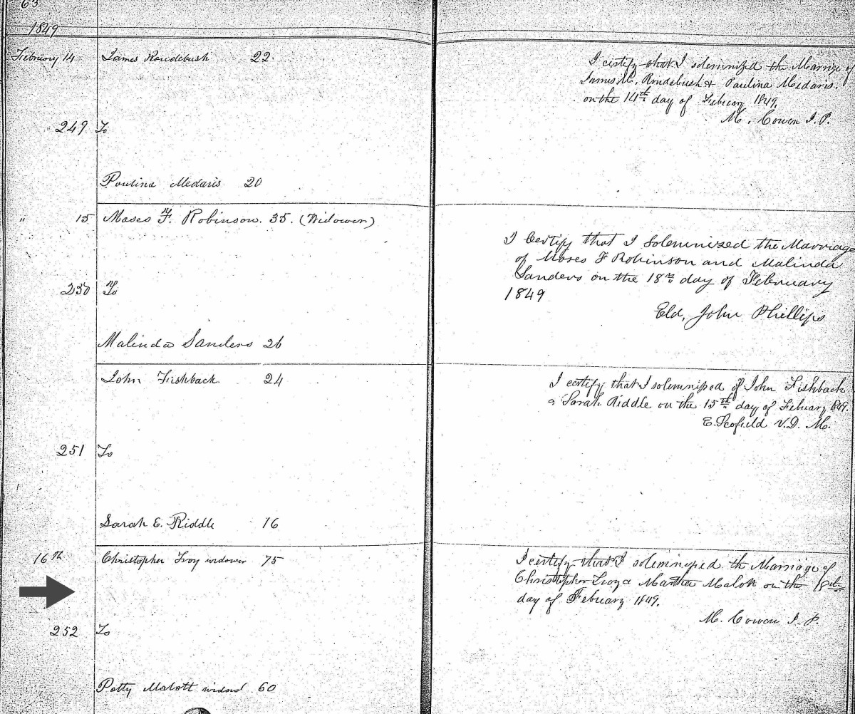 - Christopher Troy, b. ~1774 in Va., m. Feb. 18, 1849 in Clermont Co, Ohio (see marriage record), d. before 1857.