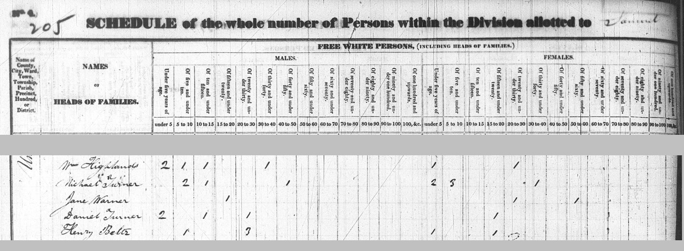 The 1840 census shows Michael Turner, Jr., Andrew Jackson Turner and William Malott, Sr. living near each other in Clermont Co., Ohio.
