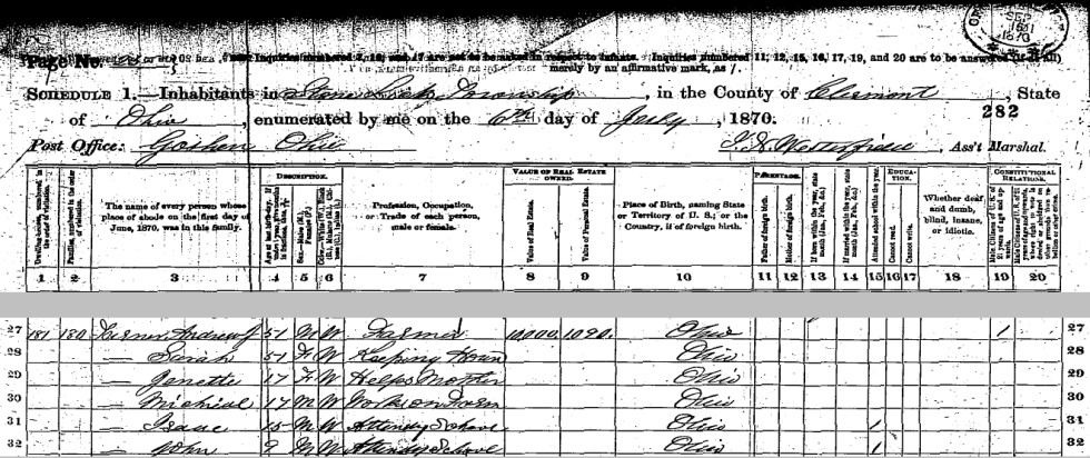 | John Turner | M | 19 | son | ✓ | Agt | Ohio | Ohio | Ohio |