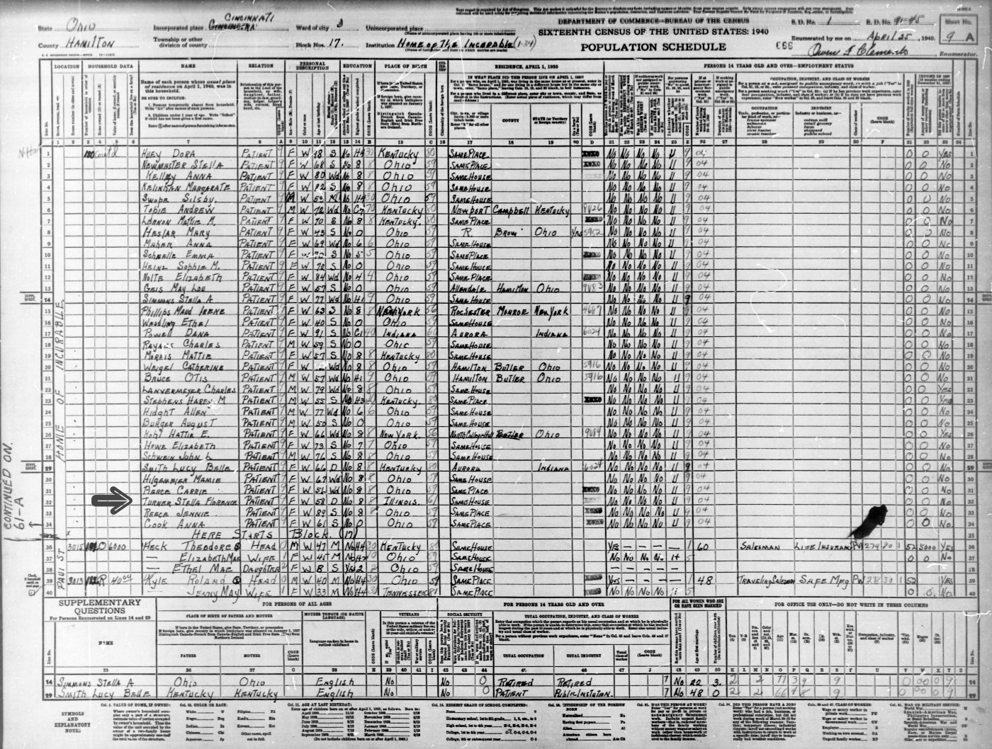 | Sarah Turner | F | 61 | Wife | ✓ | Keeping house | Ohio | Penn | Penn | |