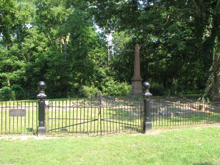 Michael Turner, Jr. died on Jan. 16, 1856, at the age of 74 or 75. He was buried in the Independent Order of Odd Fellows (I.O.O.F.) Cemetery in Clermont Co., Ohio. The cemetery was founded by Clermont Lodge No. 49 of the I.O.O.F. when a deed of purchase was signed by three trustees of the organization on April 22, 1851. At the time of this purchase, the cemetery overlooked the Little Miami River just north of the Milford village limits but now lies within the city limits. In the beginning, the cemetery comprised nearly 6 acres; however, today, the monuments and headstones are confined to a small fenced area in the much larger Carriage Way Park. Most of the headstones are broken and scattered about within the fenced area so that few, if any, are still located above the original graves. Click on the image to the right to see pictures of Michael Turner's broken headstone and the cemetery grounds. Because the headstone is so worn, we've superimposed lettering over one image to show where his name, date of death and other information is located. The word "Aged" is very legible; however, the number of Years, Months and Days that would normally appear below "Aged" are no longer readable.